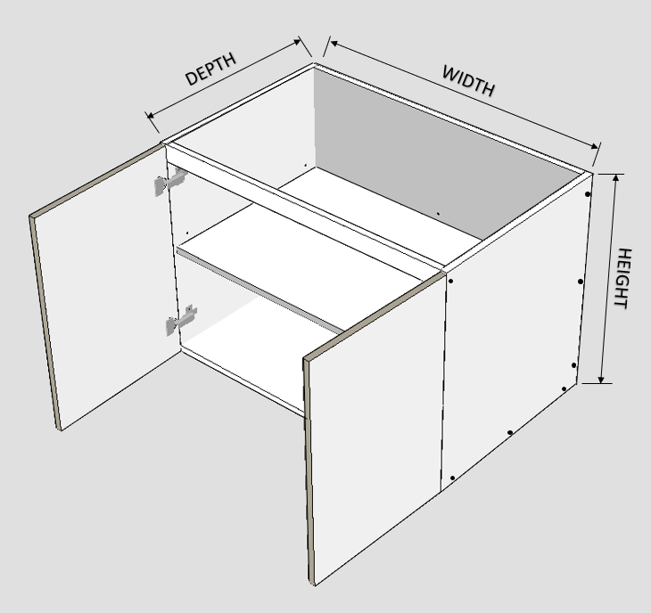 - The measurements inputted below are just the overall carcass measurement and excludes the door / drawer face thickness.