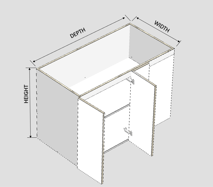 - The measurements inputted below are just the overall carcass measurement and excludes the door / drawer face thickness.
