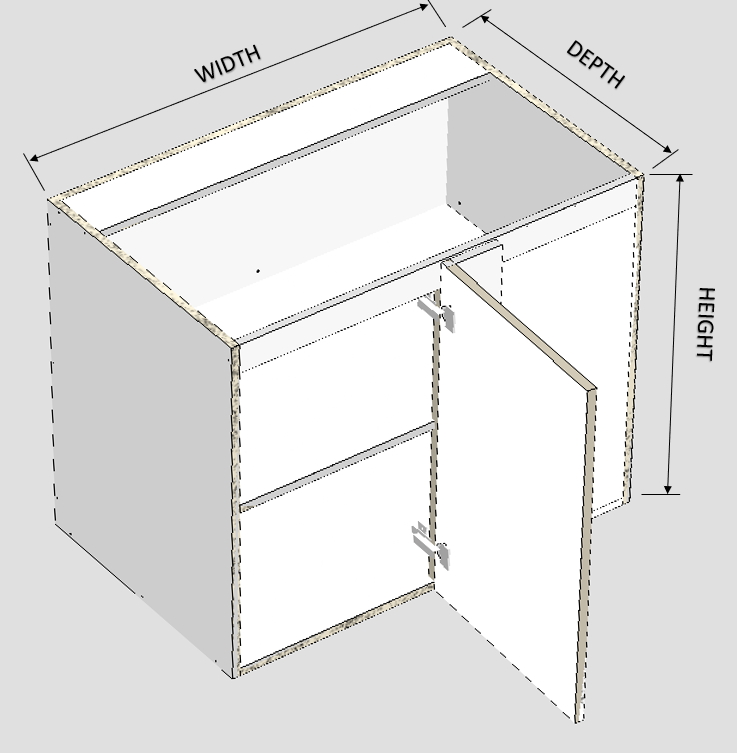 - The measurements inputted below are just the overall carcass measurement and excludes the door / drawer face thickness.