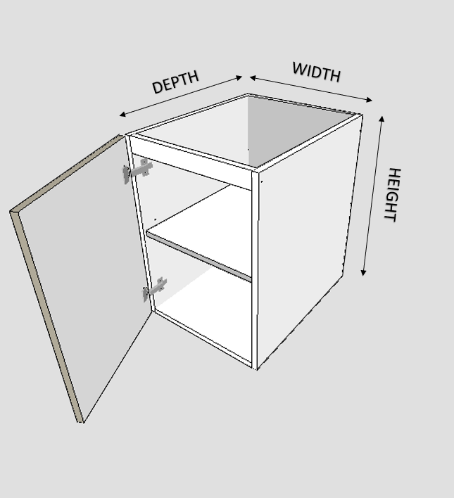 - The measurements inputted below are just the overall carcass measurement and excludes the door / drawer face thickness.