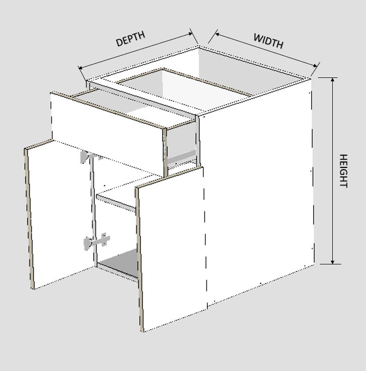 - The measurements inputted below are just the overall carcass measurement and exclude the door / drawer face thickness.